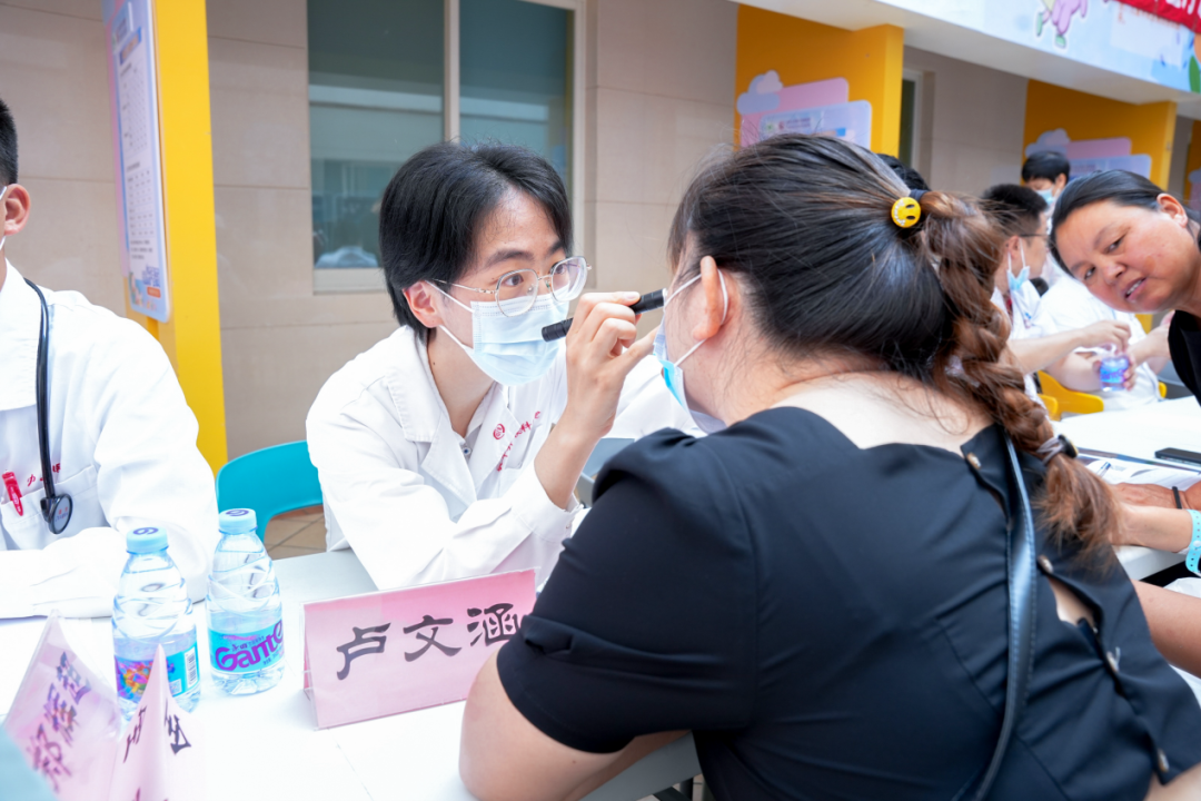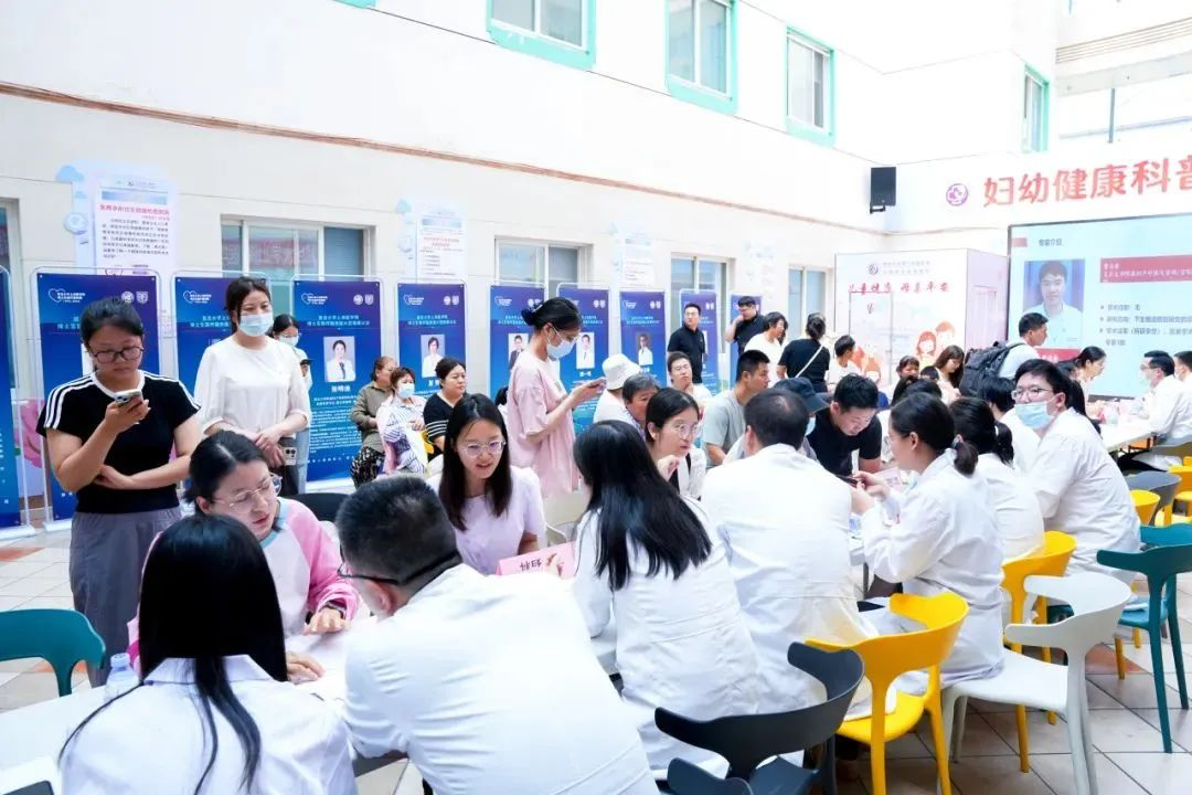 开诊仪式结束后,各位专家随即前往义诊现场。这一天,兰考下着大雨,但雨天并没有阻挡闻讯而来的当地患者就诊的脚步。博医团专家及博士生志愿者们迅速就位,与兰考县妇幼保健院的医护同仁们通力配合,耐心地解答着每位患者的咨询,并给予了科学合理的诊疗方案。