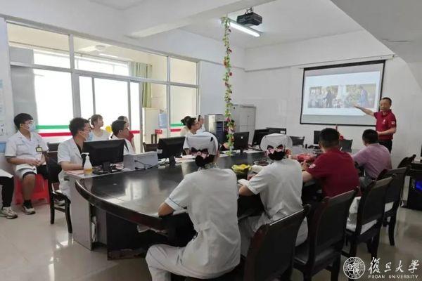 复旦大学附属华东医院内分泌科主任鹿斌、老年科博士生赵家秀分别作《国家自然科学基金申请书选题与撰写》、《健康老龄化新路径 :老年整合照护(ICOPE,Integerated care for elder people)》两场专题学术讲座,帮助当地医护人员提升相关能力水平。