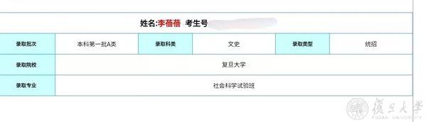 7月25日,山西省太原市常青藤中学的李蓓蓓在网页上查到自己被复旦大学录取,她翻出夹在文件袋里的半张明信片心愿卡,上面写着“我在复旦想见你”和复旦的“复”字。