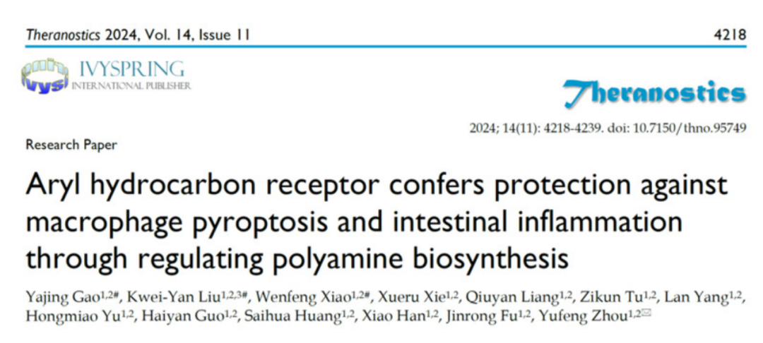 周玉峰团队报道芳香烃受体通过调控多胺代谢抑制巨噬细胞焦亡和炎症性肠病