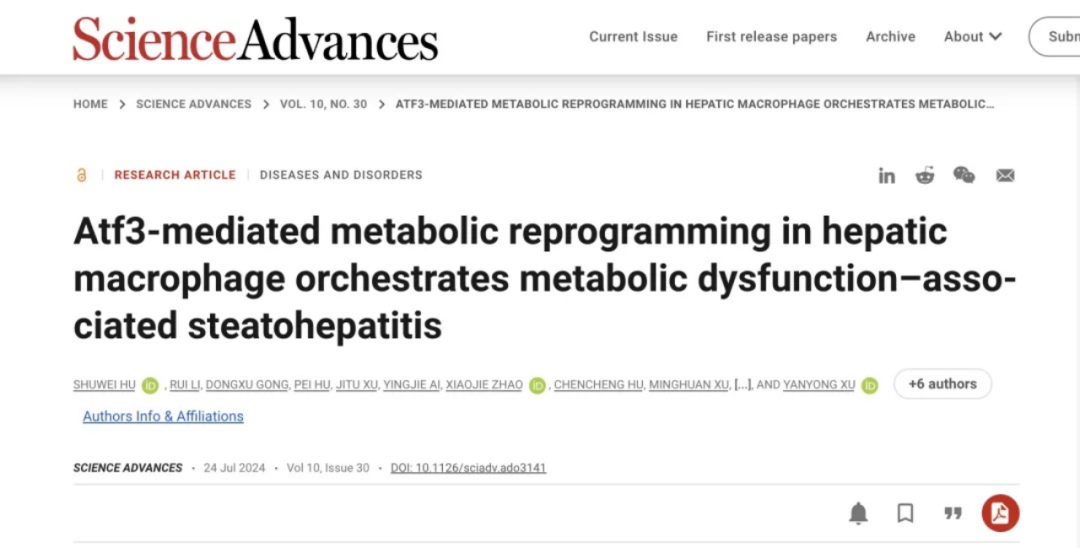 徐延勇联合吴慧娟团队揭示Atf3重塑肝脏巨噬细胞糖脂代谢干预MASH进程的新机制