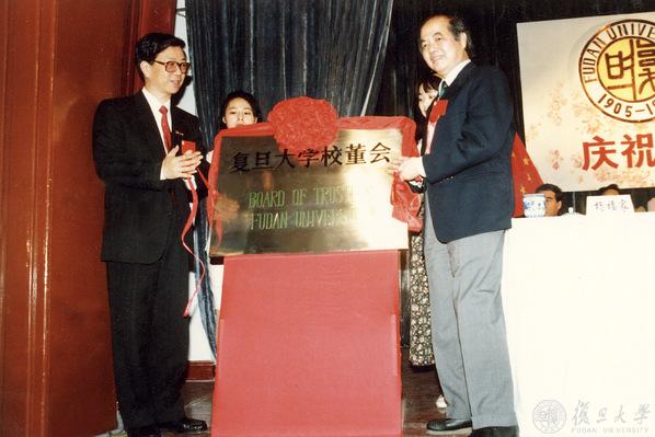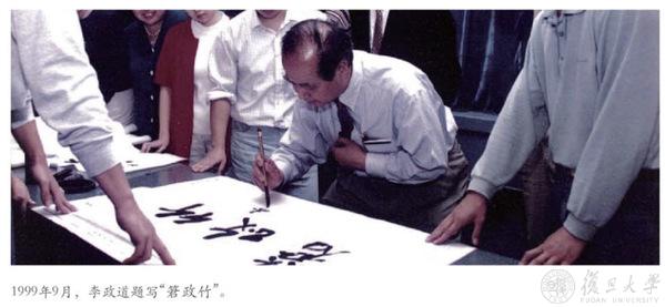 1995年,复旦大学九十周年校庆,新建成的校训墙前人头攒动。李先生作为揭幕者,作了题为“学与问”的学术报告,并担任复旦大学校董会第一届名誉主席,从此,他与复旦的感情更进一步。