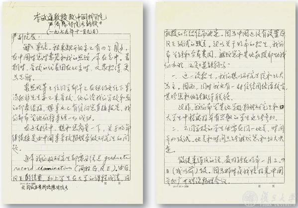 1982年,李政道受聘担任复旦大学名誉教授。苏步青老校长为其颁发聘书和校徽,在致辞时,先生说:“复旦,从今以后为我母校。”从这一年开始他几乎每次到复旦都会作学术报告。