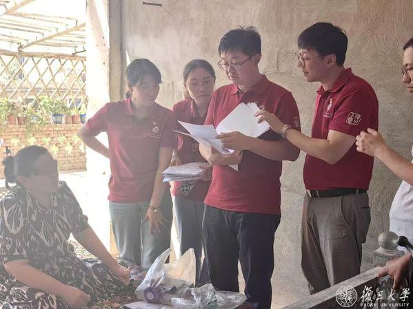 在喀什市疏附县托克扎克镇,博医团一行跟随当地基层医生的引导,背起药箱,拿起听诊器,行走在乡间小路上,为部分行动不便的患者送医上门。在走访过程中,博医团成员不仅为患者提供了及时的医疗服务,并给予病情对患者的日常生活起居提出了许多实用的建议。