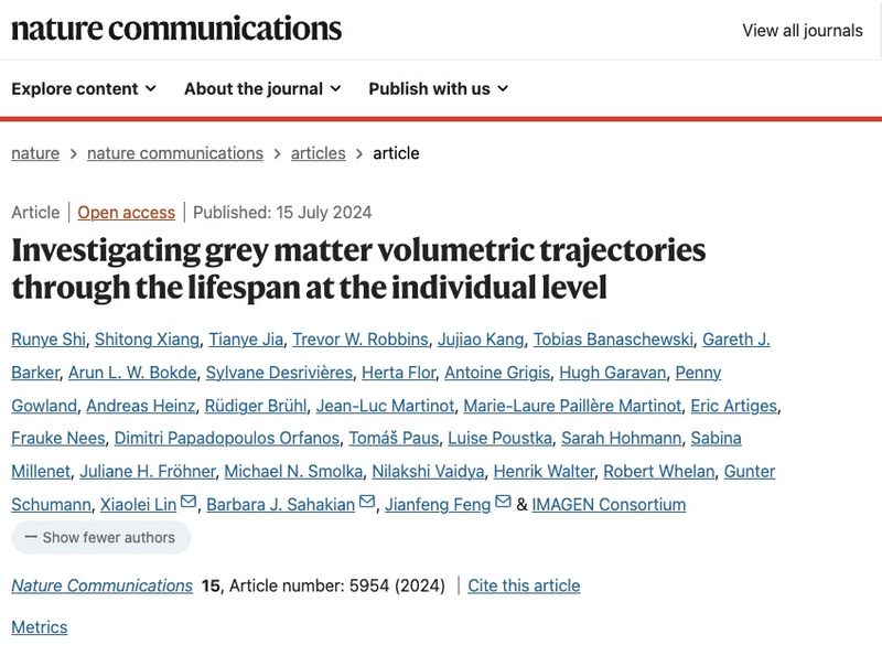 7月15日,该研究成果以“Investigating grey matter volumetric trajectories through the lifespan at the individual level”为题发表在《自然》杂志子刊《自然·通讯》(Nature Communications)上。