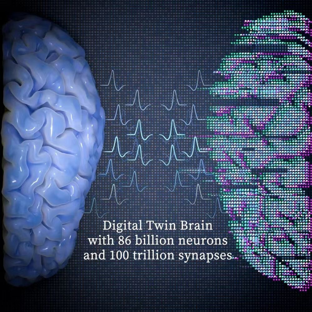 数字孪生脑示意图:通过计算系统模拟生物大脑的结构与功能