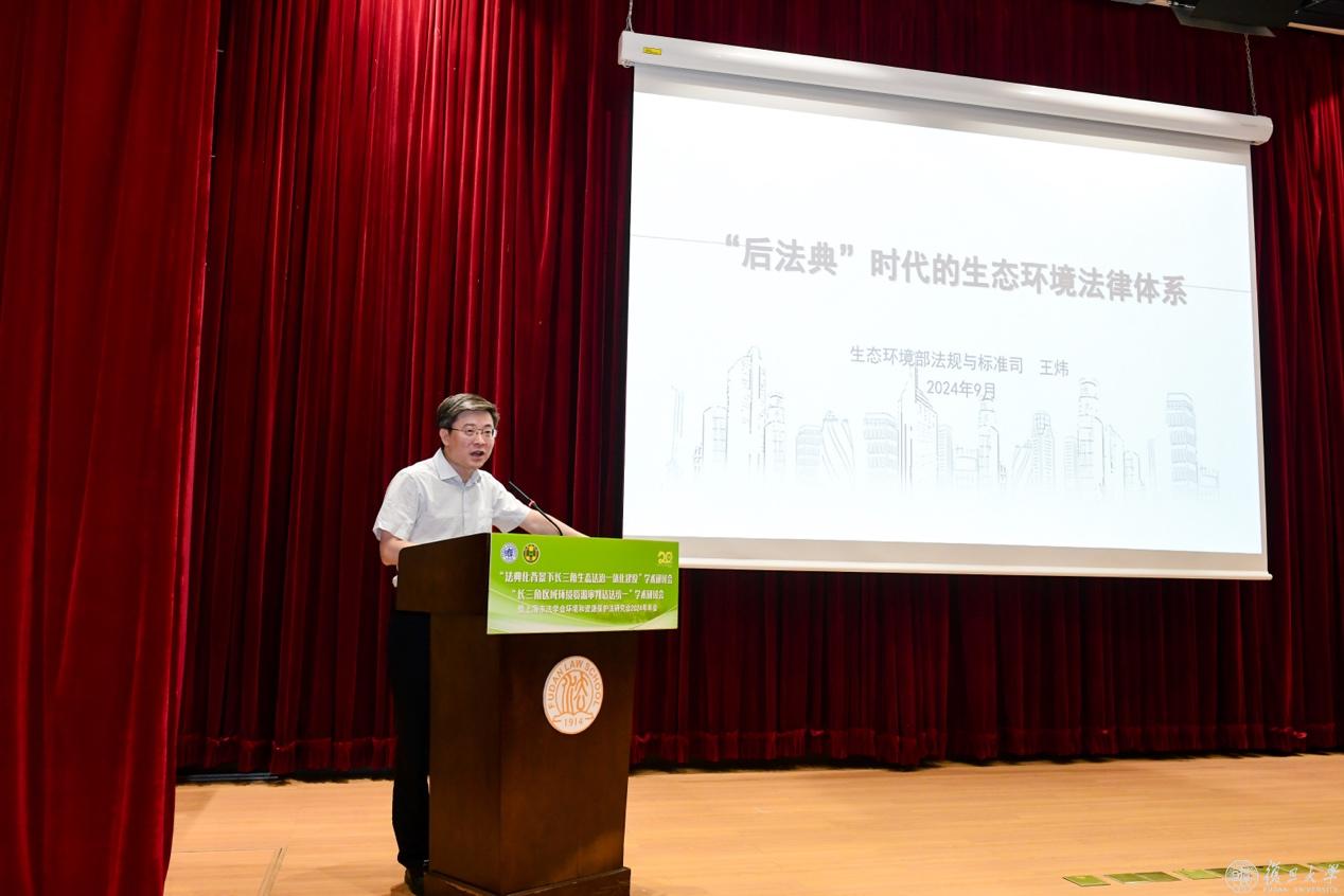 王炜作题为“法典后时代的生态环境法律体系”的主旨演讲,提出系列需考虑解决的问题,如生态环境法典的出台对目前生态环境法律体系的影响、生态环境法典的基本定位与法律效力应该如何确定、生态环境法典与行政法规和地方性法规的关系等。王炜指出,生态环境部正在积极展开研究,充分吸纳现行生态环境立法成果,充分考虑生态环境行政管理需求,充分体现生态环境保护的最新成就,全力配合立法机关做好生态环境法典编纂的各项工作。