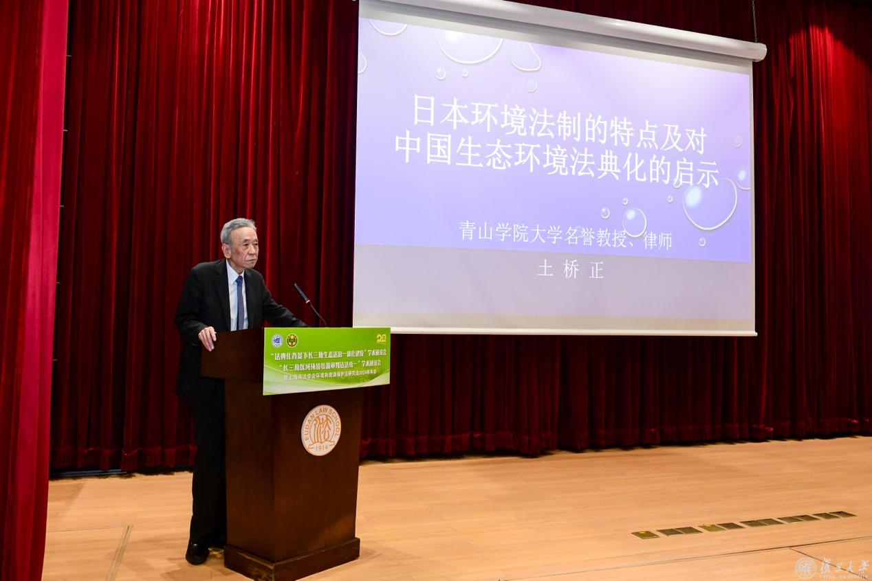 土桥正作题为“日本环境法制特征及其对中国生态环境法典化的启示”的主旨演讲。土桥正表示,日本环境法对中国生态环境法典化有以下三方面的启示:首先,明确环境法的目的,即基本理念,然后根据该目的做出适当的法律规制;其次,涉及环境的法律规制具有多样性特点,要明确各种法律规制的指向目的,就需要进行体系化;最后,随着社会及技术的发展变化会出现新型公害,故有必要进行灵活应对,法典化不应该妨碍公害的防治工作。