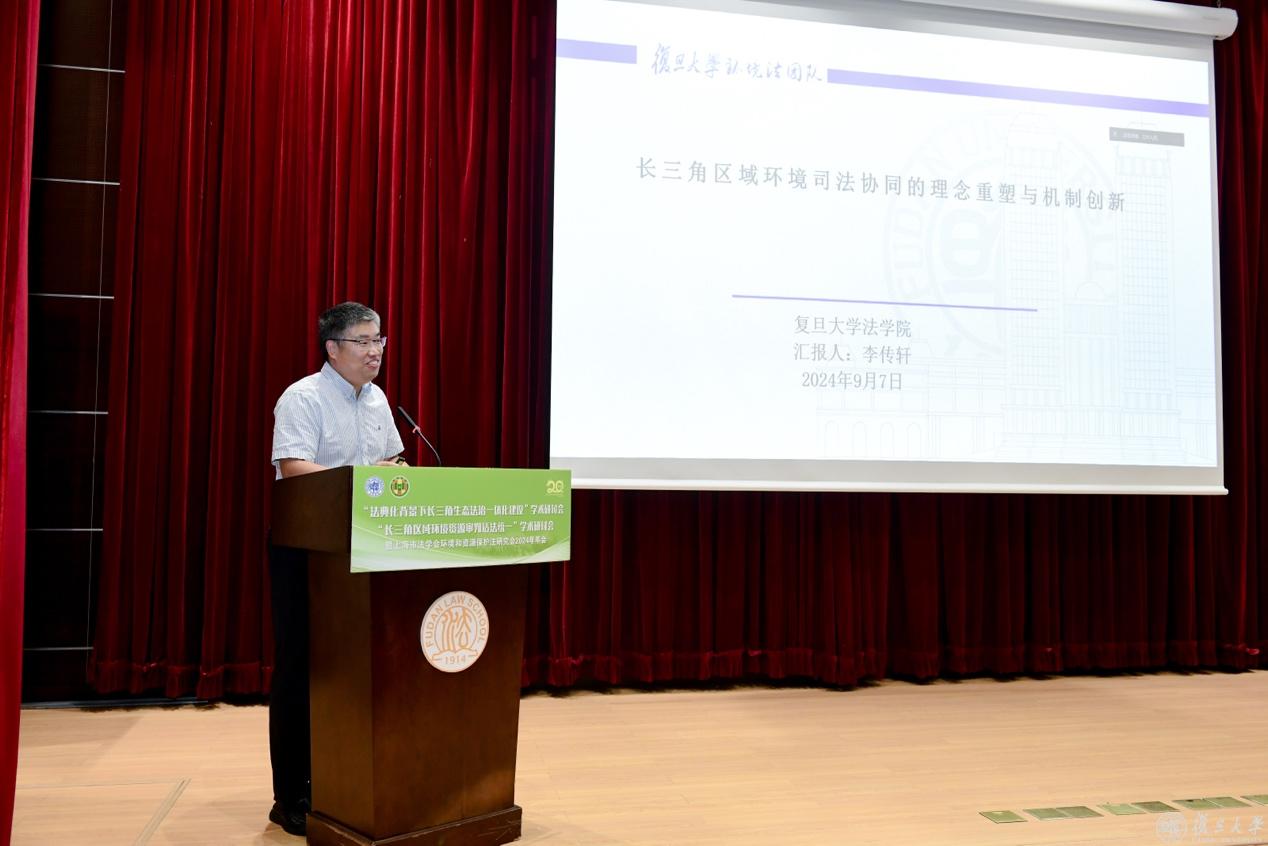 李传轩作题为“长三角区域环境司法协同的理念重塑与机制创新”的主旨演讲。他指出,长三角区域环境司法还存在务虚大于务实、内部多于外部、协作多于协同、鼓励多于约束等问题,指出应当重塑司法协同理念,由个体分散主义范式转向整体融合主义范式,从环境司法协作转向环境司法协同,通过生态环境法典编纂为创新司法协同机制提供立法支撑。