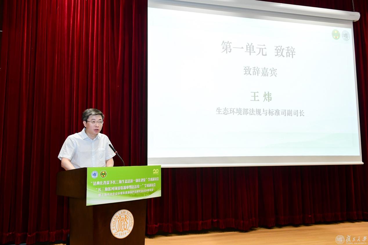 复旦大学副校长周磊,生态环境部法规与标准司副司长王炜,水利部太湖流域管理局水文局局长伍永年,全国人大常委会、环境与资源委员会副主任委员、农工党十七届中央副主席、中国法学会副会长、中国法学会环境资源法学研究会会长吕忠梅出席研讨会并致辞。开幕式由复旦大学法学院党委书记徐瑾主持。