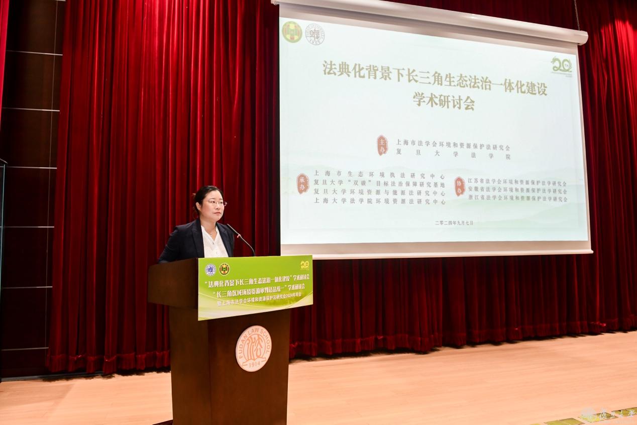 吕忠梅强调,党的二十届三中全会对编纂生态环境法典进行了特别部署,同时对长三角一体化发展进行了全面的部署,此次学术研讨会的举办恰逢其时。吕忠梅表示,中国法学会组织了全国的学者参与生态环境法典编纂的研究工作,复旦大学环境法团队是中坚力量之一。法典编纂是一个体系化的过程,需要编立纂修、集成创新,进行一些前瞻性研究非常必要。长三角是中国经济和社会发展的先行区,同时也是法学重镇,她期待通过各位专家的讨论,为国家生态环境法典编纂做出积极贡献,同时也为长三角地区的发展和生态法治建设贡献智慧与力量。