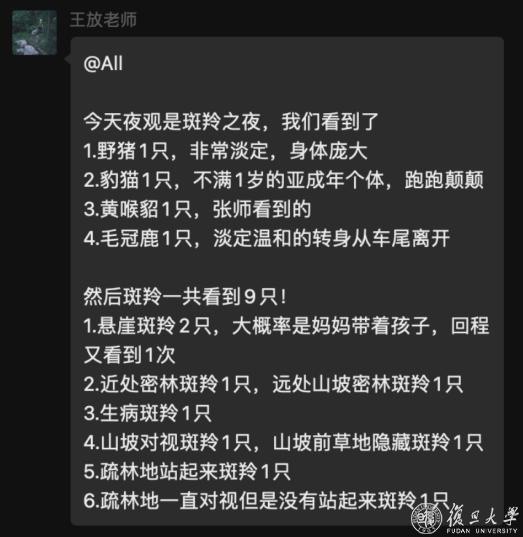 有一个夜晚被同学们命名为“斑羚之夜”,是整个授课过程中大家看见野生动物数量最多的一天。