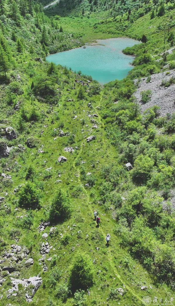 继续向前,突然,视野空旷,目光向下,镶嵌在雪山之中的是一汪碧绿湖水。后来,从巡护员的讲解中,万恒旭了解到,在当地语言里,这些坐落在高山上的湖泊有一个统一的名字——“海子”。