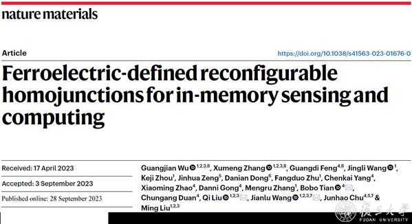Nature Materials同期发表“研究简报”对成果进行了亮点报道,评价其“开发了一种使用铁电调控的非易失性光电二极管传感器阵列来实现感存算一体架构,大大减少了传感和计算单元之间接口处的数据传输和转换,在能耗和延迟方面显示出显著的优势”。