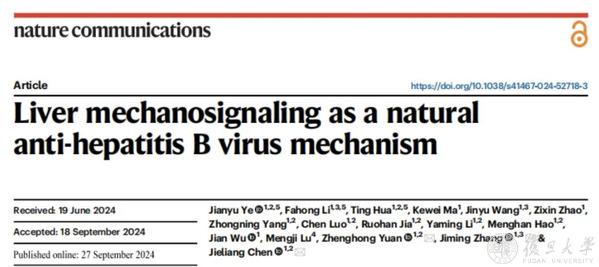 2024年09月27日,复旦大学上海医学院医学分子病毒学教育部/卫健委/医科院重点实验室与附属华山医院合作团队在《自然-通讯》(Nature Communications)发表题为“Liver Mechanosignaling as a Natural Anti-Hepatitis B Virus Mechanism”的研究论文,探讨了肝脏力学微环境在宿主应对乙肝病毒(HBV)感染中的作用,发现肝细胞通过内在机械力通路感知响应细胞外基质硬度变化进而控制清除HBV,在国际上首次揭示宿主经由机械力感知通路直接抗病毒的全新机制。