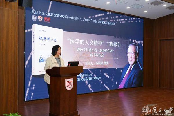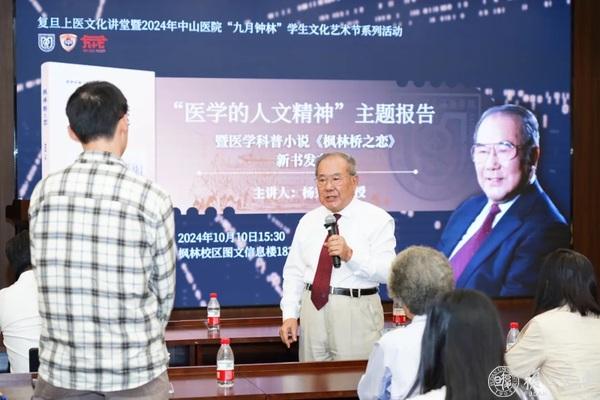 10月10日下午,复旦上医文化讲堂暨2024年中山医院“九月钟林”学生文化艺术节系列活动特邀复旦大学上海医学院教授、复旦大学附属中山医院原院长杨秉辉作“医学的人文精神”主题报告,并发布新书医学科普小说《枫林桥之恋》。中山医院、学校老干部处、医学宣传部相关负责同志出席活动,复旦上医师生、医务人员等近百人参加活动。活动由中山医院党委副书记李耘主持。