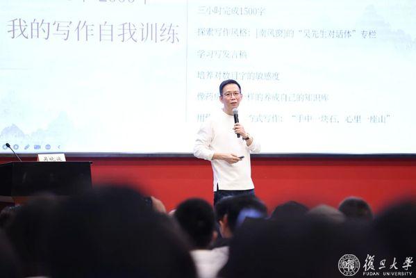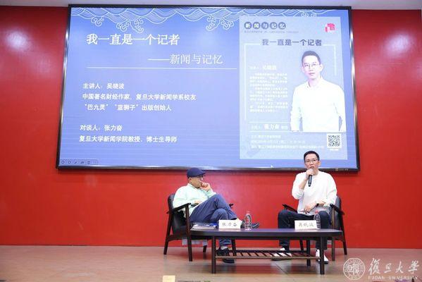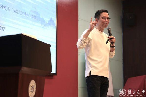 10月15日夜色深,复旦大学新闻学院蔡冠深报告厅灯火通明,掌声笑声阵阵传来,财经作家、校友吴晓波正在作《我一直是一个记者》主题演讲。他在演讲中分享新闻写作的心得体会,并与新闻学院教授张力奋对谈,快问快答,为师生读者答疑解惑。