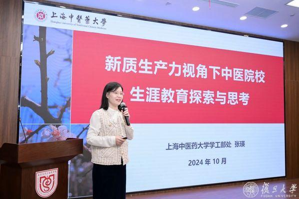上海中医药大学学(研)工部副部长张瑛就“新质生产力视角下中医院校生涯教育探索与思考”进行分享。当前,需面向国家战略需求,培养高素质中医药人才。上海中医药大学着力构建贯穿学生全生涯周期发展的终身视角,重视从单一校园课堂走向社会实践平台,形成产教融合育人新模式,并数字化赋能生涯教育。通过生涯教育实践,上海中医药大学毕业生服务基层信念更加坚定,就业先进典型不断涌现,为中医药事业的高质量发展提供了有力支撑。