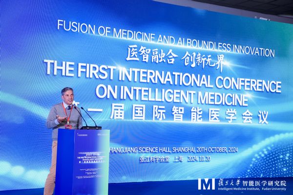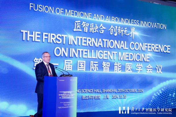 2024年10月20日,复旦大学智能医学研究院与张江生命科学国际创新峰会联合主办的第一届国际智能医学会议在上海隆重召开,主题为“医智融合,创新无界”。大会得到了战略合作伙伴武田中国,以及卓越合作伙伴深圳华大智造科技股份有限公司和上海力山生物医药有限公司的大力支持。会议汇聚了来自德国、美国、英国及中国的位世界知名专家、学者和业界代表,共300余名全球专业人士和研究者齐聚上海。会议围绕医学大模型与临床应用、智能微生物与人类健康、健康医疗大数据的价值挖掘与应用、智能医学影像和智能药学等前沿领域,分享了最新研究成果与发展趋势,并共同探讨了全球智能医学领域的交流与合作。