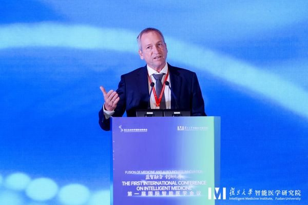 德国科学院院士Roland Eils在致辞中表示对于第一届国际智能医学会议成功举办的祝贺。Roland Eils 院士感谢各位嘉宾的莅临和专家学者们的分享,并表示通过此次机会全球各地的专家分享他们在人工智能、医疗大数据、智能微生物等领域的成果,共同推动智能医学领域研究的进展以及合作。同时,他表示在这些众多研究领域需要不同的国家、不同的研究机构、不同领域的学者的共同努力和推动。