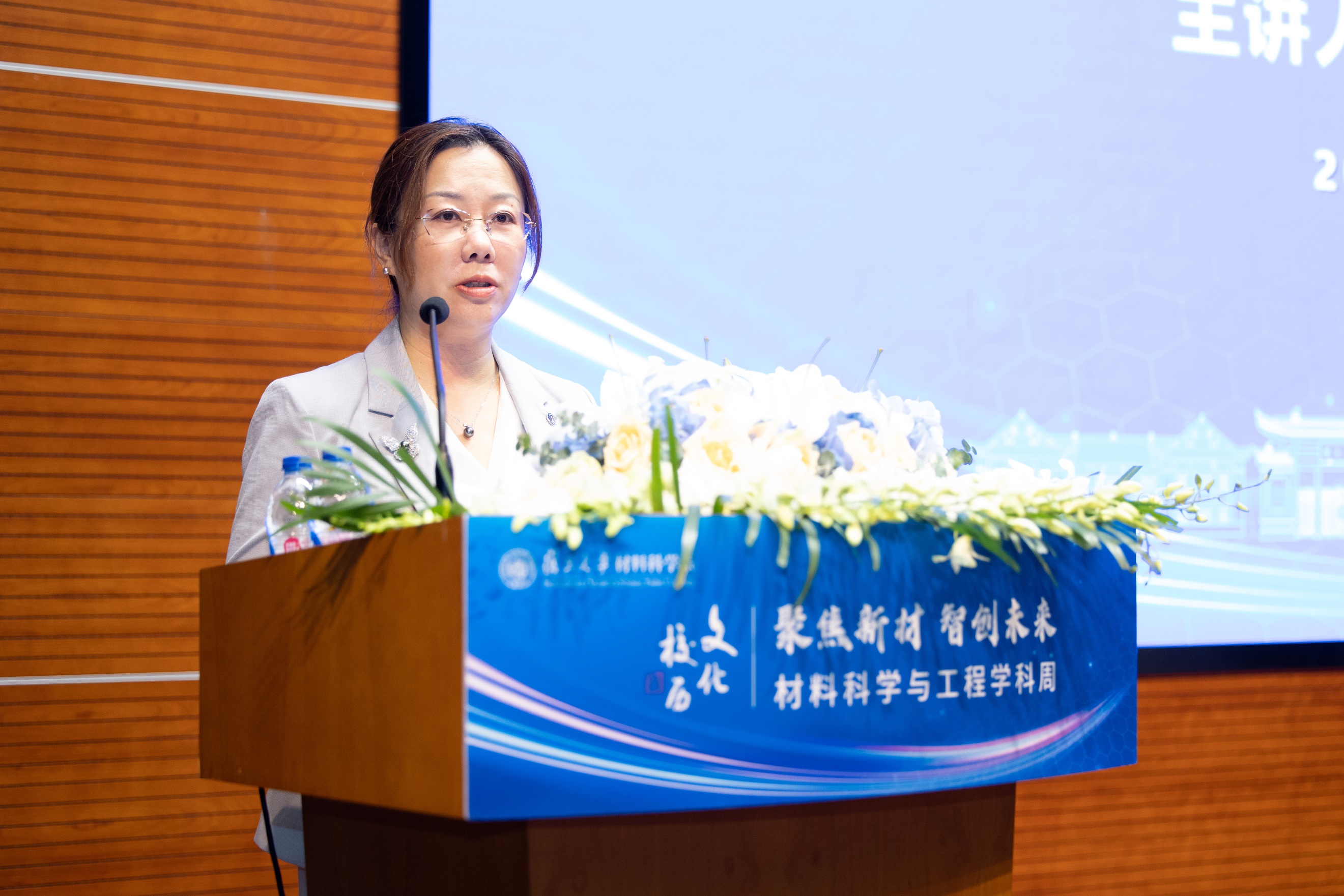 随后,材料科学系主任、材料科学智能研究中心主任俞燕蕾对中心筹建情况进行介绍。她指出,中心的成立旨在打造一个集材料科学研究、人工智能技术应用、产学研合作于一体的科创平台,具体将在材料科学系学术委员会的领导和支持下,通过软硬件设施与人才队伍建设、教育培训、成果转化等手段,围绕智能软体材料、智慧能源材料、智能半导体纳米材料、智慧金属新材料四个方向开展研究,实现高水平原创科研成果和高素质拔尖人才队伍双丰收的建设目标。