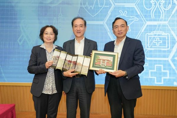 袁正宏、雷群英分别向韩院士赠送上医、基医礼物