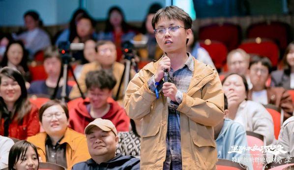 映前1小时,不少观众冒雨赶来、提前入场。600多人齐聚政立院区剧场,迎接跨越时空的沉浸体验,这也是剧场落成后首次放映影片。