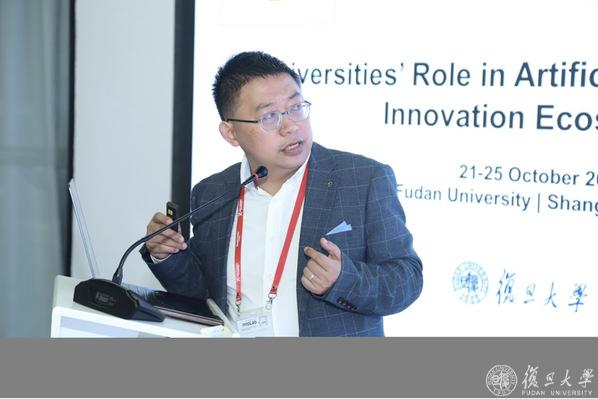 复旦大学网络空间国际治理研究基地主任沈逸以“未来高校在人工智能创新中的角色”(The Future of Universities’ Role in AI Innovation)为题作主旨演讲。