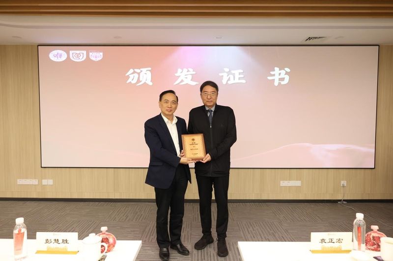 报告会后,袁正宏向董竞成教授颁发光华同心大讲堂主讲人证书
