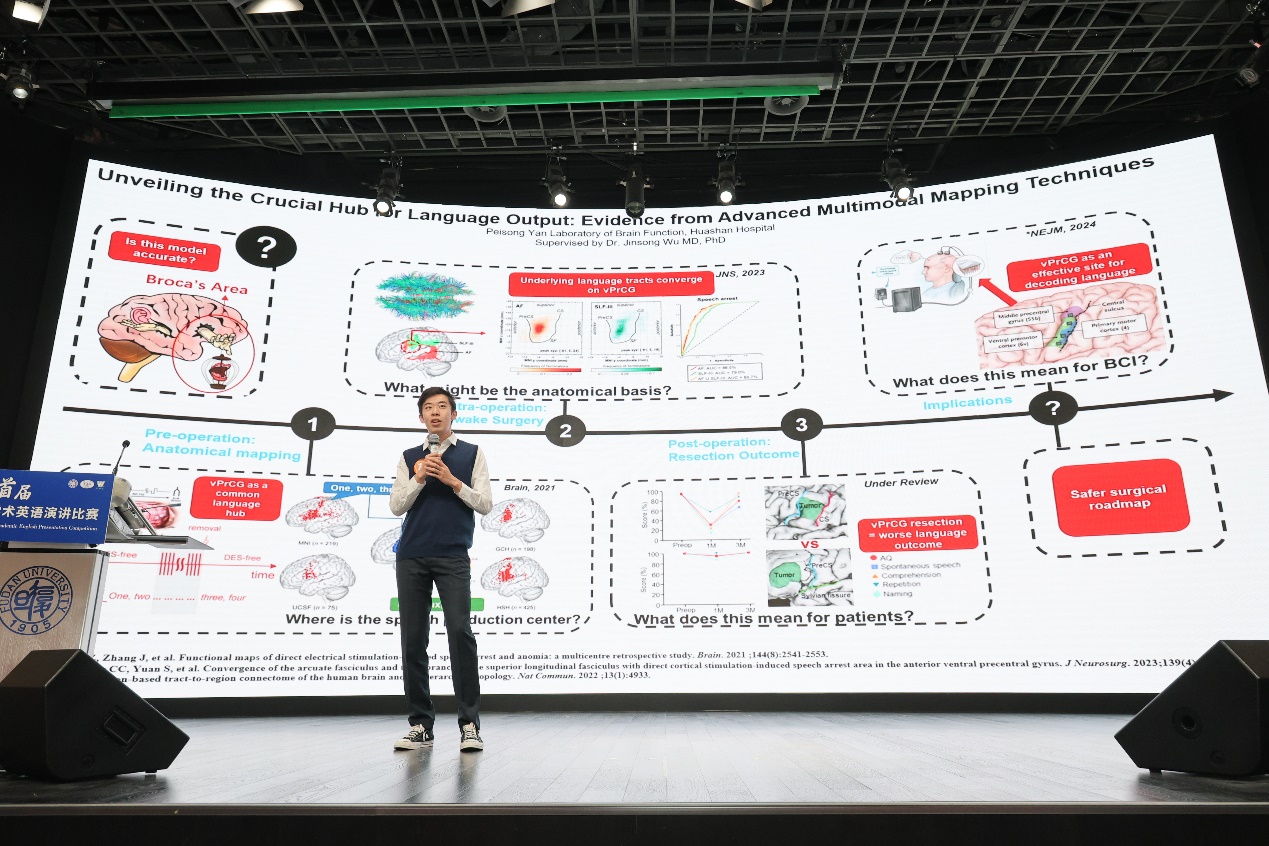 获得“科研英语演讲组”特等奖、来自复旦大学华山临床医学院的2020级本科生(临床八年制)颜裴松此次分享了“重新定位语言产生中枢”的医学研究。他表示此次参赛的经历不仅让他获得了向不同学科背景的专业评委和听众分享临床研究的宝贵机会,也更好地理解了跨学科交流所应具备的交际意识和实践能力。