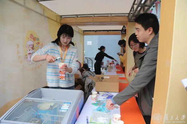 校名冰淇淋摊位前排起了长队