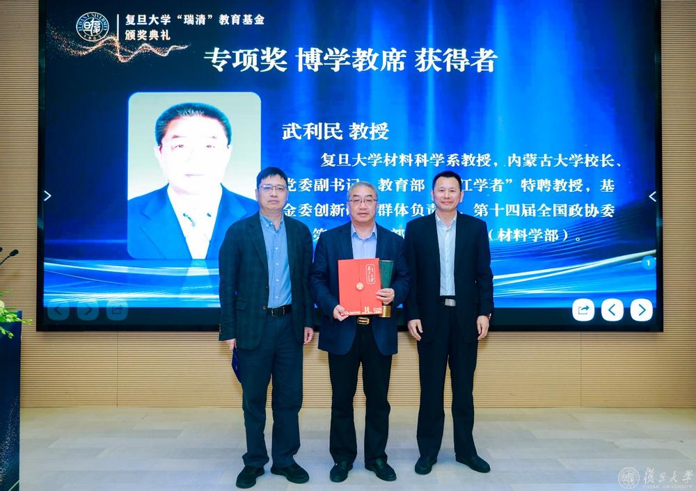 复旦大学材料科学系教授、内蒙古大学校长武利民获得2024年“瑞清”教育基金专项奖——“博学”教席。他针对聚合物涂层的关键科学技术问题,发展出系列微球颗粒构筑和成膜聚合物制备新机制新方法,为我国聚合物功能涂层技术的研究和推广应用做出了重要贡献。在获奖感言中,武利民感谢与自己一起合作奋斗的科研团队,表示将把这份荣誉化作动力,在功能涂层领域继续突破,立足国家重大需求,让更多成果走出实验室,为大国重器铸就“涂层之盾”。