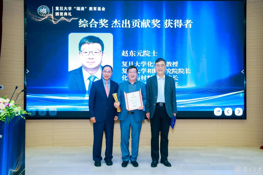 中国科学院院士、化学与材料学院院长赵东元获得2024年“瑞清”教育基金综合奖——杰出贡献奖。“杰出贡献奖”主要奖励对学院建设和发展作出突出贡献的校友、在编教师和退休教师。今年,该奖项颁给赵东元,主要是表彰他在功能介孔材料的创制与应用领域取得了国内外公认的成就,为复旦大学化学与材料科学的发展与人才培养做出了杰出贡献。