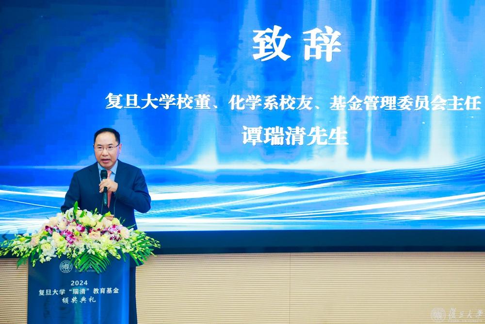 复旦大学“瑞清”教育基金,是复旦大学化学系1984级校友谭瑞清于2021年设立的人才队伍建设专项基金,设有综合奖、专项奖、新生奖和特聘讲席教授,致力于支持化学与材料学院人才引育和教育教学,“我们希望鼓励师生潜心投入到教学和科研活动中,鼓励创新、培养更多的拔尖创新人才,为学院的高质量发展提供源源不断的动力”,谭瑞清先生在致辞中谈到。