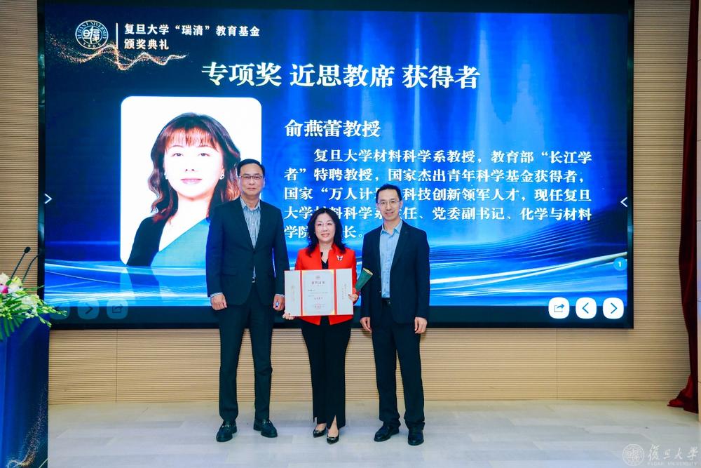 复旦大学材料科学系系主任、化学与材料学院副院长俞燕蕾获得2024年“瑞清”教育基金专项奖——“近思”教席。基金表彰其开创了光控微流体新技术,在光响应液晶高分子材料及其柔性器件的基础和应用研究方面做出的突出贡献。“这份荣誉让我多了一份责任,同时也给予了我强大的动力。”俞燕蕾在获奖感言中说。她深情回顾了自己在复旦工作28年的经历,并对学校和教师前辈对自己的栽培和帮助表达了感谢,表示将继续聚焦基础原创研究,做出更多具有国际影响力的顶尖科研成果。