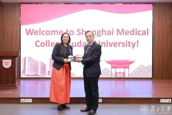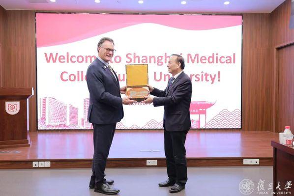2024年11月18日上午,新西兰达尼丁市市长Jules Vincent Radich及奥塔哥大学(University of Otago)副校长Jessica Palmer一行访问复旦大学上海医学院。复旦大学党委副书记、复旦大学上海医学院党委书记袁正宏对代表团的来访表示热烈欢迎并互相交换礼物。