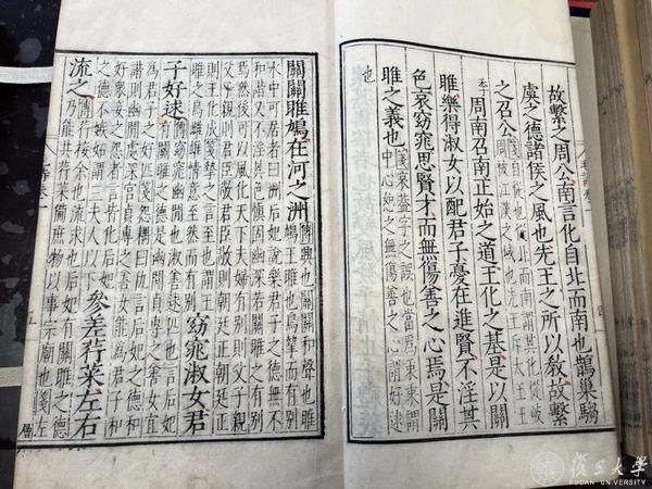 《诗经》文献、清代诗文集、明清方志、弹词宝卷、古钱币书为复旦大学图书馆的五大专藏,号称“五朵金花”。其中,《诗经》类文献单行本约760种,丛书本约300种,总量逾1000种,可谓品种丰富、版本众多,其品种数量及版本价值在国内外馆藏机构中首屈一指,是目前复旦大学图书馆最重要的特色馆藏。