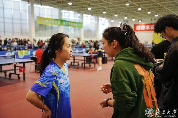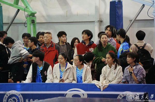 “‘往前站,迎前!’‘没关系啊,认真想好每一个球。’这是比赛期间,带队教练王丽娜和顾翎铃常对场上同学的鼓励。”乒乓球比赛的魅力不仅在于凝聚团队的力量,更在于不断突破自我。无论水平高低,每位参赛同学在赛前都经历了紧张与期待,而在赛场上,队员们学会了冷静面对每一次乒乓球的跳动与旋转,用精准的判断和有力的扣杀回应每一个挑战。每一次奋力回击,都诠释了我们对胜利的执着追求,也展现了复旦学子的坚韧与拼搏精神。这些动人瞬间,不仅激励着现场的每一个人,也将成为同学们青春记忆中的浓墨重彩的一笔,感染着球队的每一位老师与同学,以及线上为球队呐喊助威的每一位支持者。赛后每晚,王丽娜和顾翎铃会将所有队员召集在房间复盘当日的比赛,总结每位队员的经验,并期望大家在第二天能有更好的发挥。