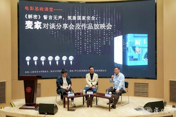 作为复旦大学“文化校历”活动之一,“电影思政课堂——《解密》誓言无声,筑盾国家安全:麦家对谈分享会及作品放映会”由上海复旦大学校友会、复旦大学党委宣传部主办,华人文化集团公司、华人影业有限公司协办。这是本学期第二场电影思政课堂活动。