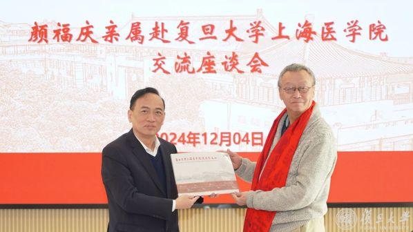 袁正宏代表复旦上医向颜福庆亲属赠送纪念品,感谢家属不远万里从大洋彼岸把颜福庆老校长的崇高精神与生平故事带回上医。