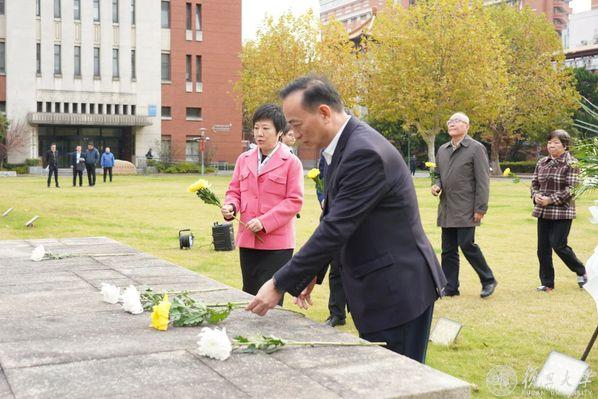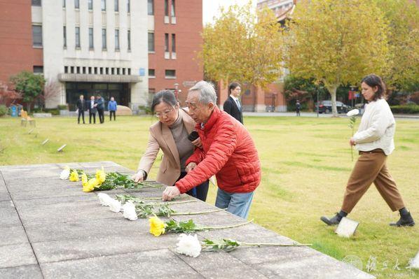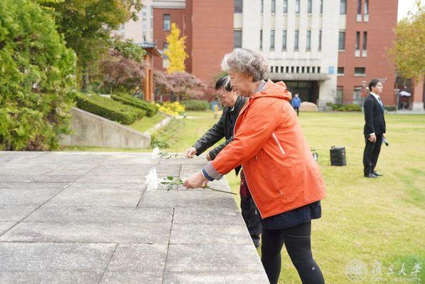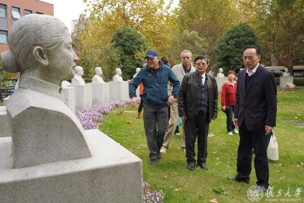 颜福庆亲属一行前往誓言广场瞻仰16位一级教授像。