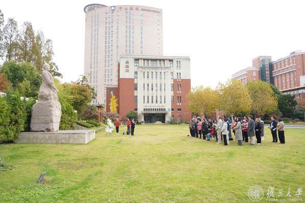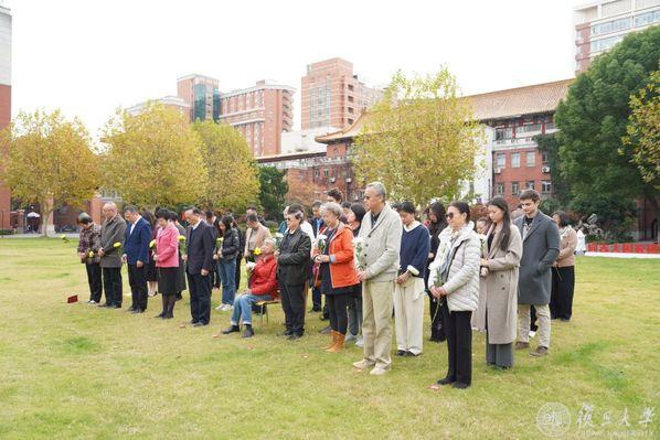 上午,众人来到福庆广场向颜福庆像献花,集体向颜福庆像默哀、鞠躬致意,缅怀先辈。