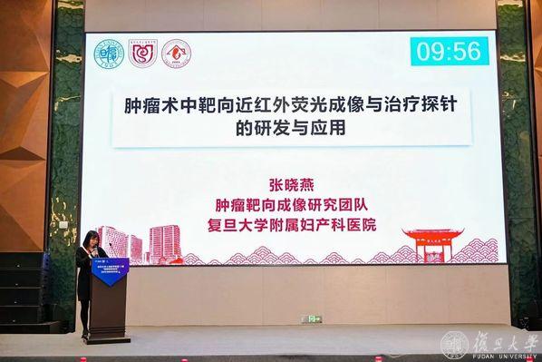 复旦大学附属妇产科医院张晓燕研究员以“肿瘤术中靶向近红外荧光成像与治疗探针”作主题报告。研发团队基于下丘脑-垂体-性腺轴的激素与其受体开展研究,探索出提高肿瘤靶向诊疗体系组织特异性的方法,自主制备了肿瘤靶向近红外荧光成像探针,利用生殖激素相关受体在肿瘤组织中高表达和近红外荧光染料穿透深度更深的优点,能够靶向识别肿瘤病灶,在术中实时快速的帮助术者定位恶性病灶、界定病灶边缘、判断残留病灶,提高手术精准性与彻底性。目前,已在卵巢癌和子宫内膜异位症的小鼠模型中验证有效性与安全性。其核心技术已申请专利保护。