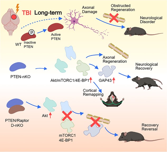 这些发现揭示了PTEN/Akt/mTORC1轴在TBI后神经回路重塑和皮层重塑中的重要作用,为进一步了解TBI的病理生理机制提供了新的视角,并提出了以mTORC1为靶点的潜在治疗策略,为TBI的临床治疗提供了新的理论依据和方向。