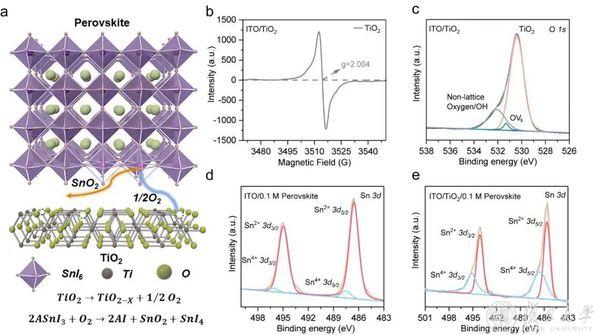 TiO2电子传输层中氧空位诱导锡基钙钛矿薄膜埋底界面的氧化