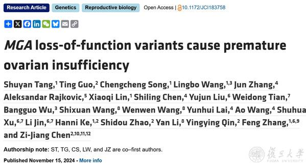 5.附属妇产科医院唐淑妍、张锋教授团队揭示早发性卵巢功能不全关键致病基因MGA16