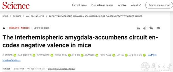 2.Science|基础医学院刘星、马兰院士团队发现跨脑半球神经连接介导负性情绪和记忆形成