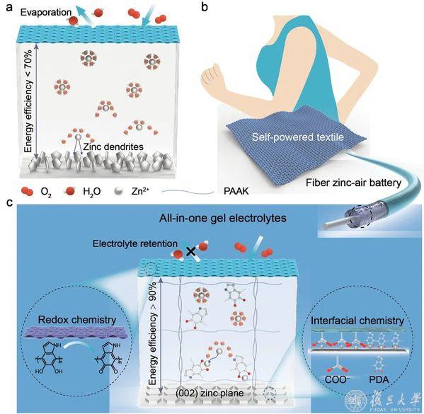 用于纤维锌空气电池的多功能凝胶电解质的示意图