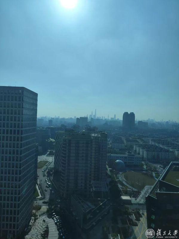 在上海数学与交叉学科研究院大楼内拍摄的窗外景色