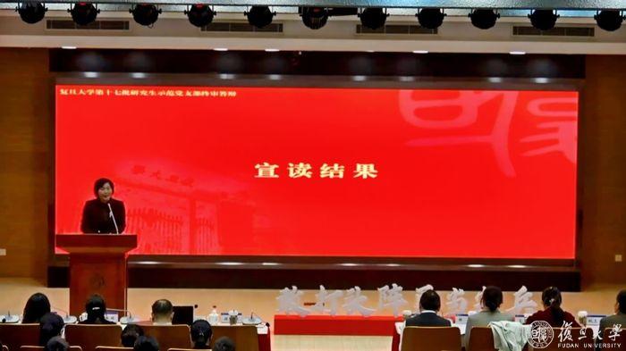 复旦大学党委副书记钱海红宣读第十七批研究生示范党支部名单